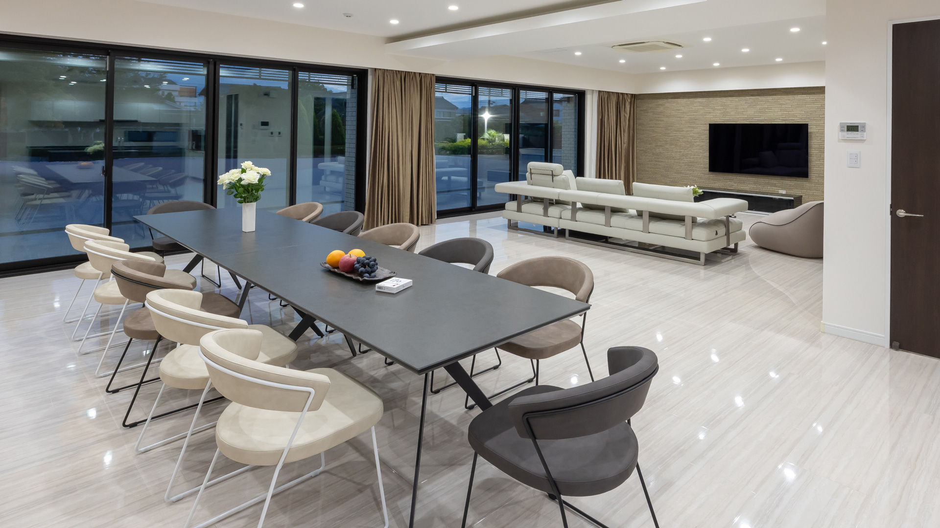 ※ ベッド&布団をあわせて最大15名が宿泊可能です - 大型ダイニングテーブル